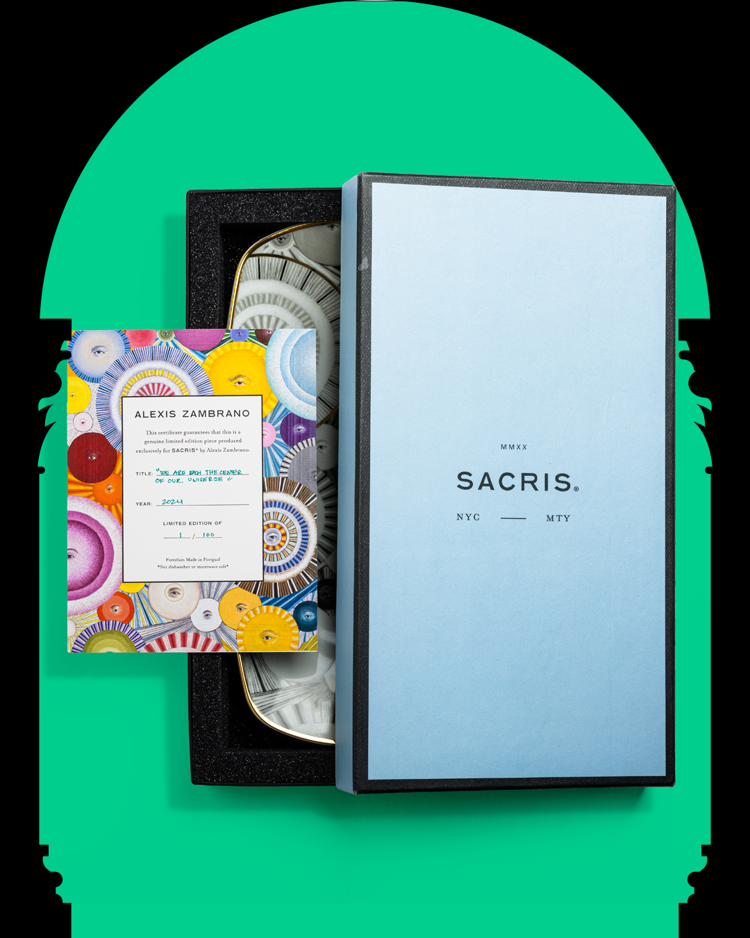 Limited edition porcelain towel tray made in Portugal exclusively for Sacris® by Alexis Zambrano. Limited edition of 100.