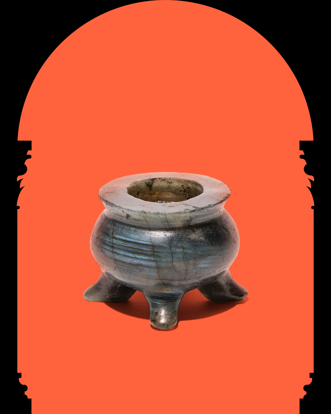 Handcrafted labradorite mineral burner. Includes 1 bag of black burner sand.